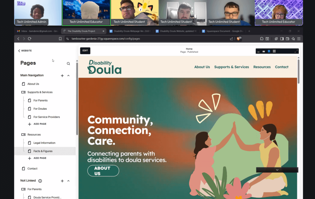 Placed into teams, students chose between three client projects. One team designed a website for Disability Doula, whose mission is to equip disabled individuals and parents with disabilities with the necessary tools, resources and support related to pregnancy. Students worked on accessible, user-centered layouts and content for the site. Another team developed a social media campaign for the website Shop the Spectrum, creating strategy, visuals, and messaging tailored to the brand’s audience and mission. The last team conducted beta testing for Tech Unlimited’s new website, documenting usability issues, accessibility considerations, and recommendations to support a more enhanced experience.